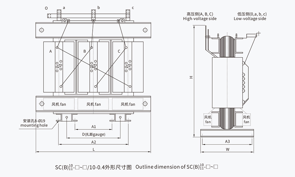 树脂绝缘干式变压器是我公司引进国外先进技术,自主开发了SC10、SCB10系列以及SC11、SCB11系列带填料薄绝缘干式变压器,由于线圈被环氧树脂包封,所以难燃,防火、防爆、免维护,无污染,体积小,可直接安装在负荷中心。同时科学合理的设计和浇注工艺,使产品局部放电量更小,噪声低,散热能力强,在强迫风冷条件下可以在125%额定负载下长期运行,并配有智能温控仪,具有故障报警,超温报警,超温跳匣以及黑匣子功能,并通过RS485串行接口与计算机相连,可以集中监视和控制。
